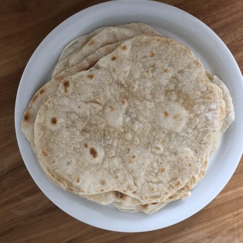 - Verdeel het deeg in 6 bolletjes en rol deze uit tot tortillawraps.